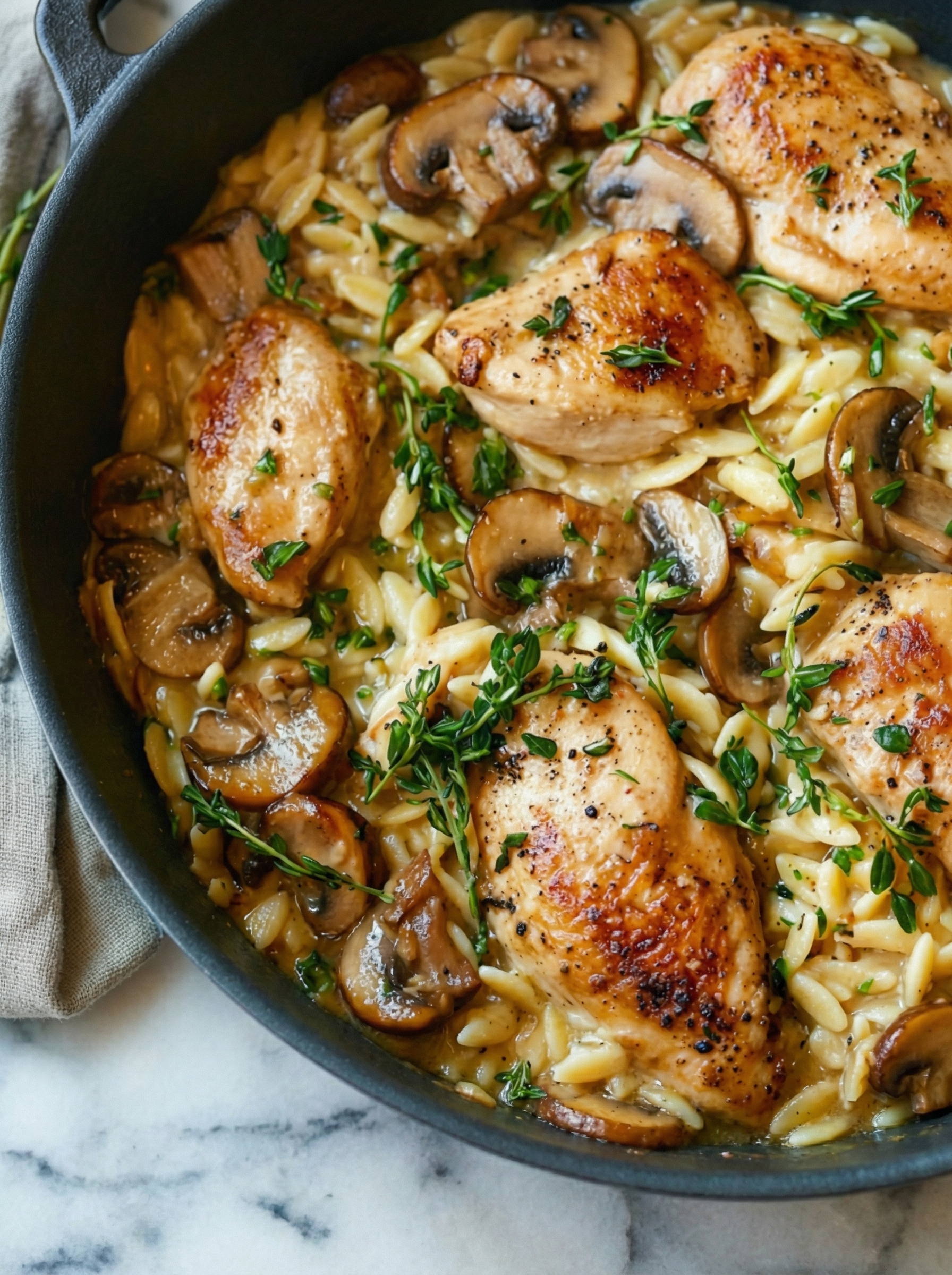 One Pot Chicken and Mushroom Orzo